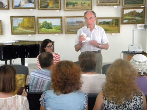 На презентации выступил В. Гришков, коротко остановился на содержании и оформлении издания, рассказал о работе над книгой, которая продолжалась больше года, хотя собирать материал он начал давно. Ведущая встречи, библиотекарь отдела искусств Н. Афонина, другие участники мероприятия также высказали мнение о прочитанном. В заключение гость из С-Петербурга поделился планами на будущее, среди которых не только подготовка к изданию второй части, но и выпуск воспоминаний о другом нашем земляке – художнике Игоре Гержедовиче, 80-летие со дня рождения которого будет отмечаться в этом году в августе.