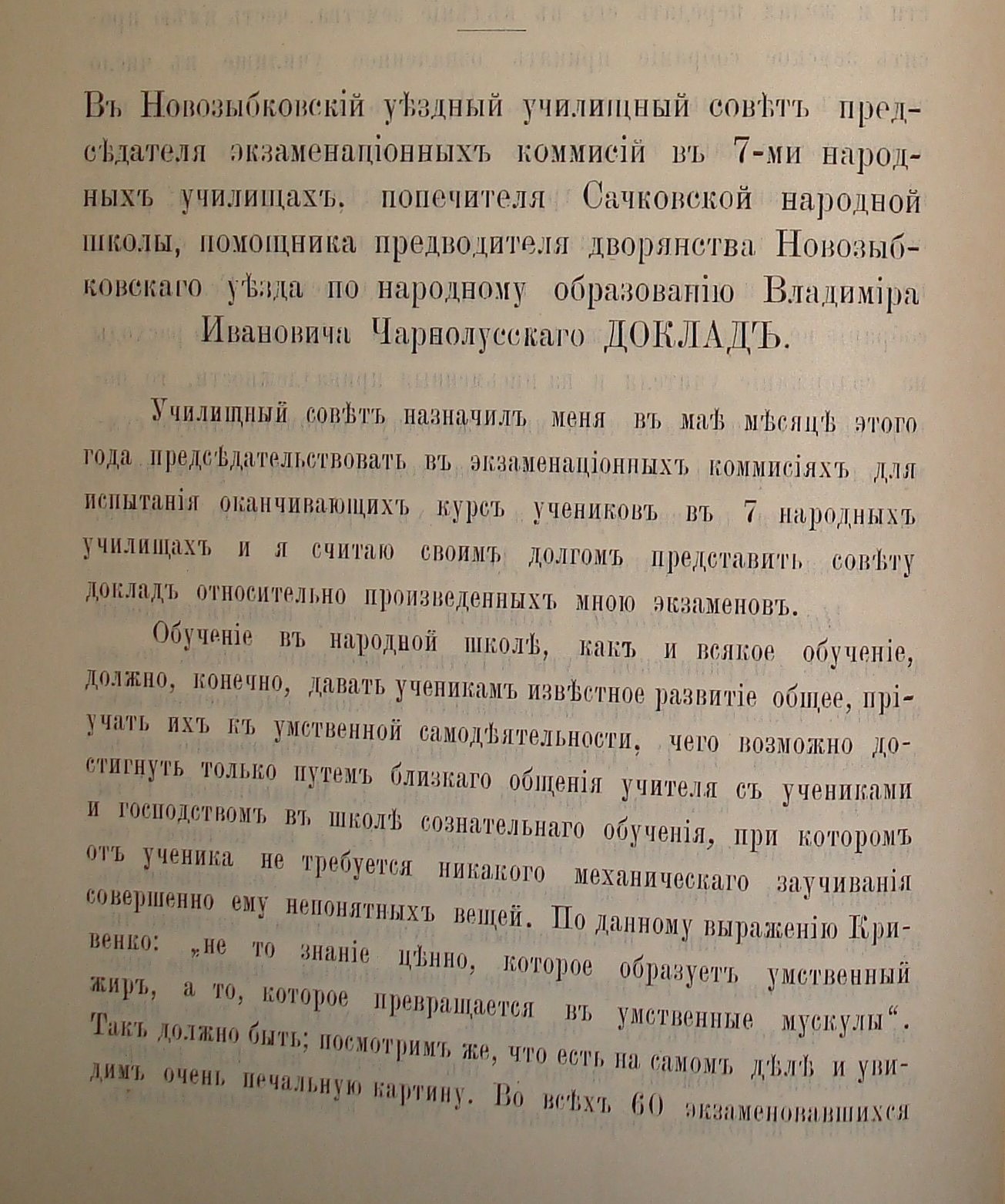 Доклад Чарнолуского по вопросам образования в новозыбковском уезде. Год 1890 (1)
