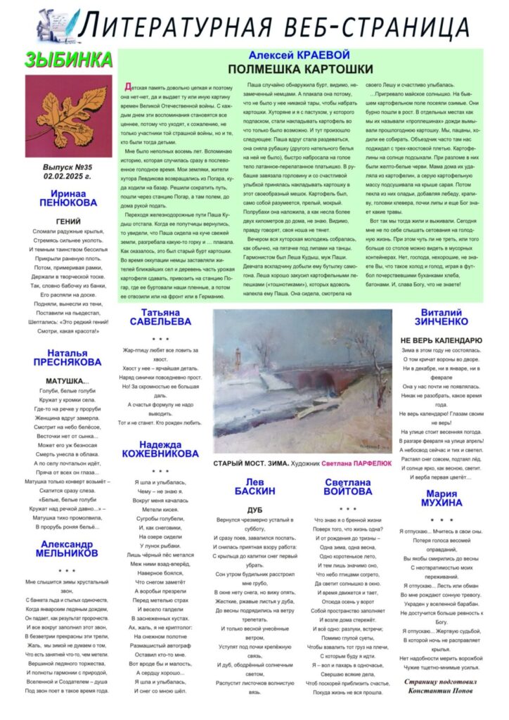 ЛИТСТРАНИЦА “ЗЫБИНКА”. Интернет-издание №35, 2025.02.02.