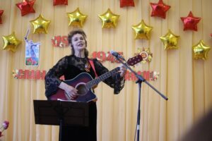 Музыкальным подарком стало исполнение песни Г. Ворониным. Н. Иванова под гитару исполнила попурри из песен военных лет.