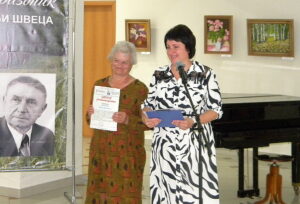 Перед началом заключительной части праздника – открытого микрофона, – выступила председатель Брянской писательской организации, наша землячка Ирина Пенюкова. Ирина Валентиновна поделилась с присутствующими своим мнением о значении творчества Ильи Швеца, представил приехавших с ней брянских писателей: Елену Леонову, Ольгу Шаблакову, а также новозыбковчанку Надежду Кожевникову – членов Союза писателей России. Они прочитали свои стихи. Татьяна Ермачкова поблагодарила Новозыбков в лице организаторов за память о большом брянском поэте.