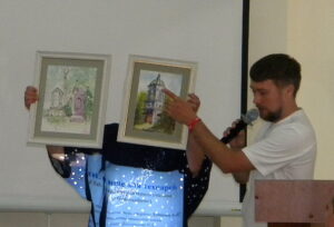 С докладом, посвященном 150-летию Новозыбковского реального училища выступил Александр Дудников, который продемонстрировал много документов, посвященных истории училища и включенных им в изданную в 2022 году книгу “Новозыбков на рубеже 19-20 вв. Реальное училище” и озвученных также в большой статье в “Брянской Учительской газете” (в том же году) под названием “Училище для технарей”. В них подробно перечисляются вехи появления и становления этого учебного заведения, к основанию которого в 1875 году непосредственно был причастен Н.Д. Долгоруков, приводятся списки кадрового состава, фамилии известных выпускников. Коротко докладчик остановился на деятельности Александра Лашкевича (1842 – 1887), основателя первой в городе общественной библиотеки, впоследствии издателя журнала “Киевская старина”. Александр Петрович преподнес библиотеке два изображения (рисунки) памятных мест с родины князей Долгоруковых, села Волынщина-Полуэктово,