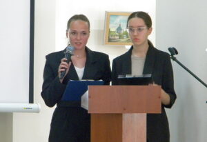 Продолжили эту тему номинанты стипендии им. Н. Долгорукова Софья Борисёнок и Дарья Каурова – студенты педколледжа, ныне размещающегося в стенах бывшего реального училища и сменившего здесь ранее находившийся пединститут.