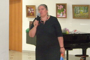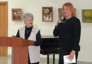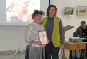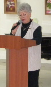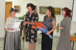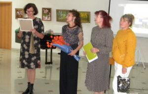 Собравшихся – именинников и гостей – поздравила руководитель брянской делегации, председатель региональной общественной организации Союза писателей России Ирина Пенюкова. Ирина Валентиновна родилась в Новозыбкове и наш город хорошо знает. Она отметила значительную роль местного литературного объединения в писательском движении Брянщины, в настоящее время входящего в областное литературное объединение при БРПОСП, лично поздравила Валентину Михайловну со знаменательной датой и пожелала дальнейших творческих и издательских успехов, выразила свою поддержку всем членам ЛИТО “Зыбчане” в будущем. Прибывшая с ней ее заместитель, член правления БРПОСП Наталья Шестакова прочитала свое стихотворение, посвященное Новозыбкову. Они преподнесли в дар библиотеке книги: персональный сборник Н. Шестаковой и недавно вышедший в Брянске альманах, в котором, в том числе, опубликованы и произведения новозыбковцев.