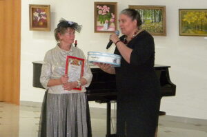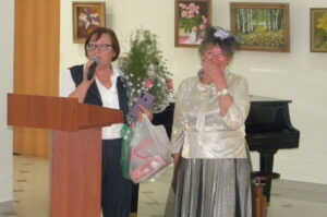 Директор Новозыбковской библиотеки имени Н.Д. Долгорукова Валентина Филимонова поздравила творческий коллектив и лично В.М. Басову с юбилеем, преподнесла ей цветы. Затем настала очередь получать подарки от коллег. Пожелания и приветствия услышали присутствующие от делегации народного коллектива любителей творчества “Вдохновение” из г. Добруш, Белоруссия (руководитель Людмила Яськова), стародубского литературно-эстетического объединения “Глаголъ” (руководитель Наталья Романова), Клинцовского литобъединения “Источник” (зам. руководителя Елена Бондаренко), злынковской делегации (руководитель Наталья Дегтерева), еще одного литературно-музыкального объединения “Стародубские родники” (руководитель Владимир Подоляко). Звучали и музыкальные подарки.
