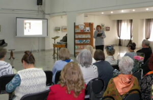 Открыла встречу ведущая, заведующая отделом библиотеки Елена Гусенок. Она представила и прокомментировала в визуальной проекции на экране историю создания клуба, познакомила с фотографиями создателей клуба, его участниками в разные годы, проектами, изданиями и проводимыми мероприятиями. На стенде, стоящем в зале были выложены печатные издания, выпускаемые творческим объединением в разные годы. Среди них сборники “Над Карной”, литературно-художественные альманахи “Зыбь”, газета “Зыбка”, литературные страницы в городской газете.