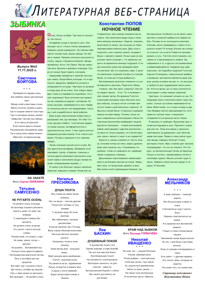 ЛИТСТРАНИЦА “ЗЫБИНКА”. Интернет-издание №43, 2025.11.11.