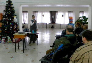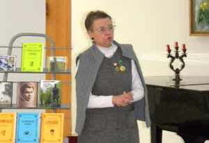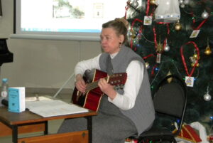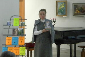 На встрече с новозыбковскими любителями литературы она рассказала о своем участии в ряде литературных фестивалей, связанных с творчеством Сергея Есенина и Николая Рубцова, представила подборку изданных книг и музыкальных сборников, исполнила ряд песен как на свои слова и музыку, так и на тексты известных поэтов. В заключение ответила на вопросы присутствующих.