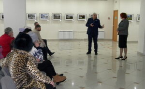 Фотограф провел небольшую экскурсию для зрителей по своим работам. От имени организаторов выступил также председатель Брянского отделения РГО Олег Заварзин. Он рассказал о проводимой Русским географическим обществом работе, поделился своим впечатлением от экспонируемых фотографий. На встрече выступили участники художественной самодеятельности с вокальными номерами.