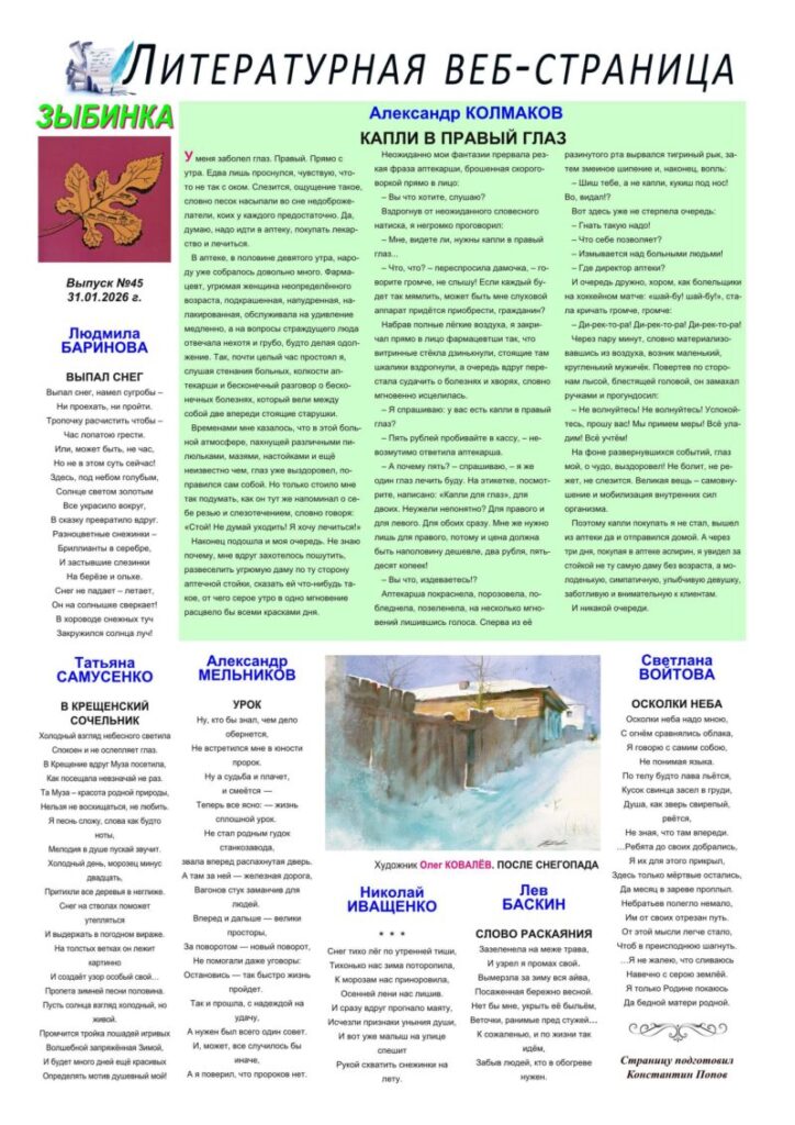 ЛИТСТРАНИЦА “ЗЫБИНКА”. Интернет-издание №45, 2026.01.31
